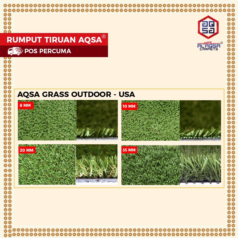 Aqsa Grass Deco Artificial Grass Carpet Fake Grass Karpet Rumput Tiruan Synthethic Turf Murah Free Pos Rectangle Shopee Malaysia