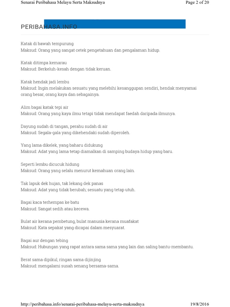 Senarai Peribahasa Melayu Serta Maksudny