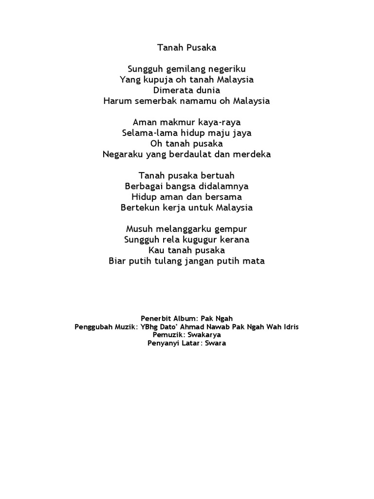 Lirik Lagu Negeri Sarawak Ibu Pertiwiku Docx Document
