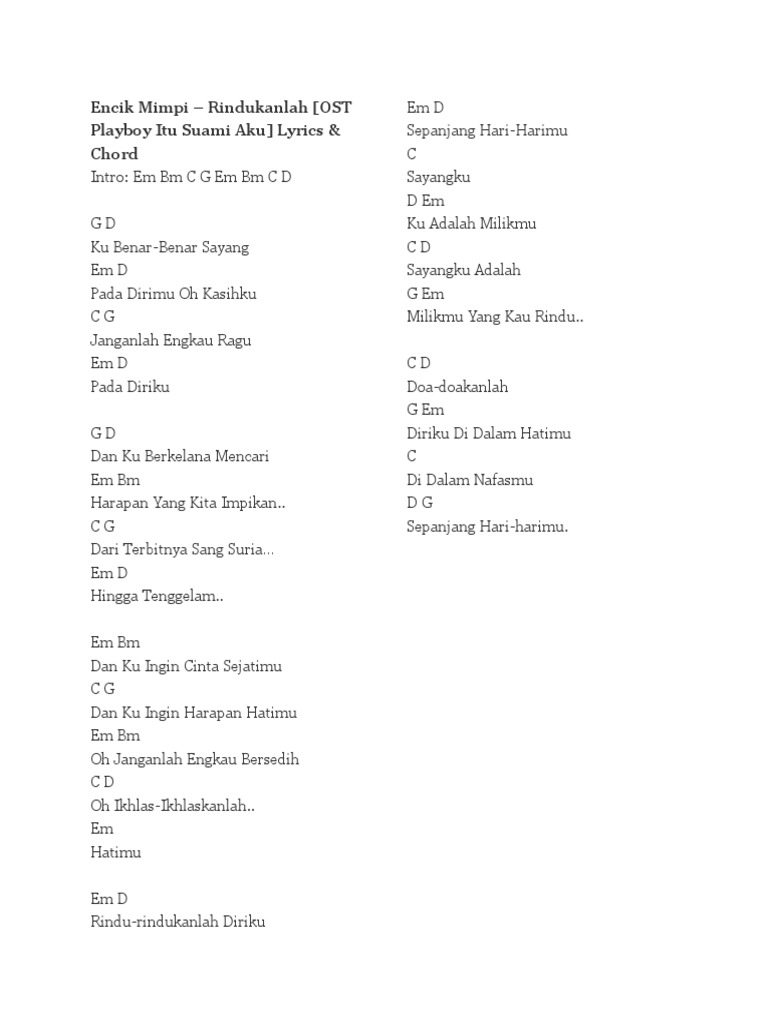 Encik Mimpi Rindukanlah Lirik Chords Chordify
