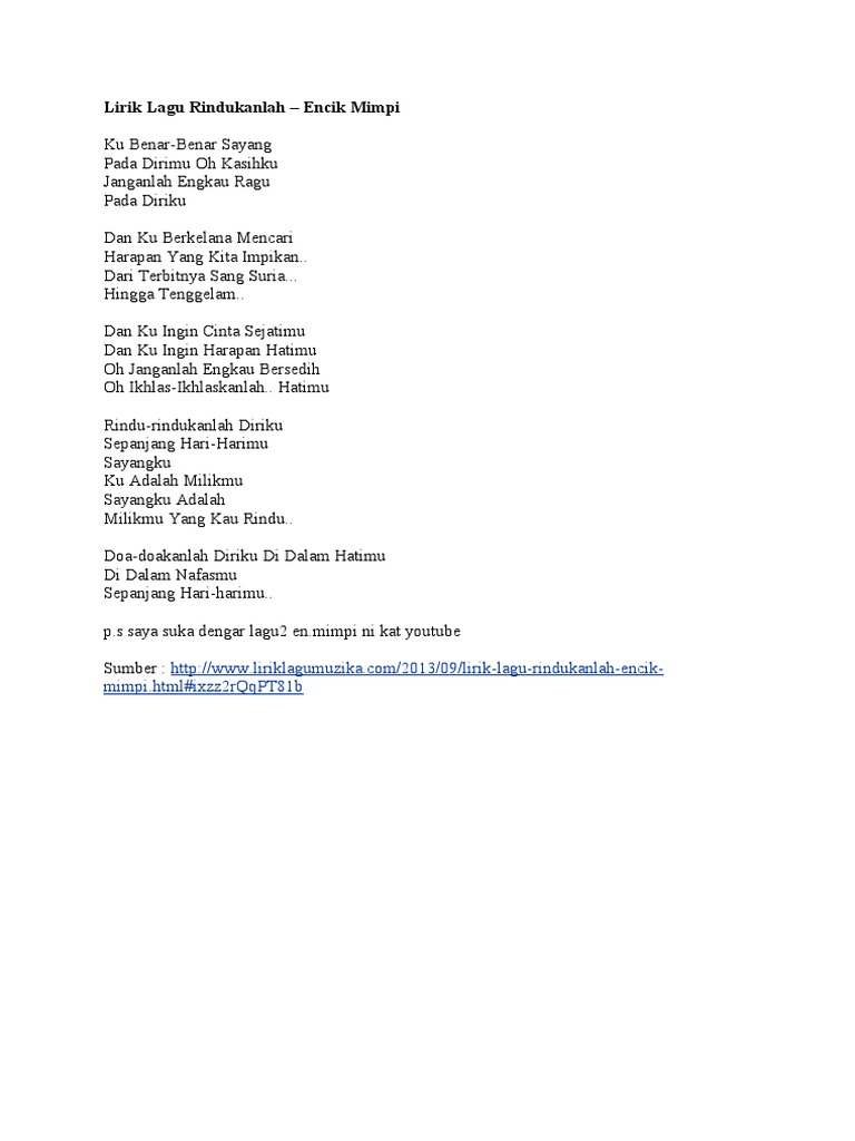 Lirik Lagu Lirik Lagu Rindukanlah Encik Mimpi Ku Facebook