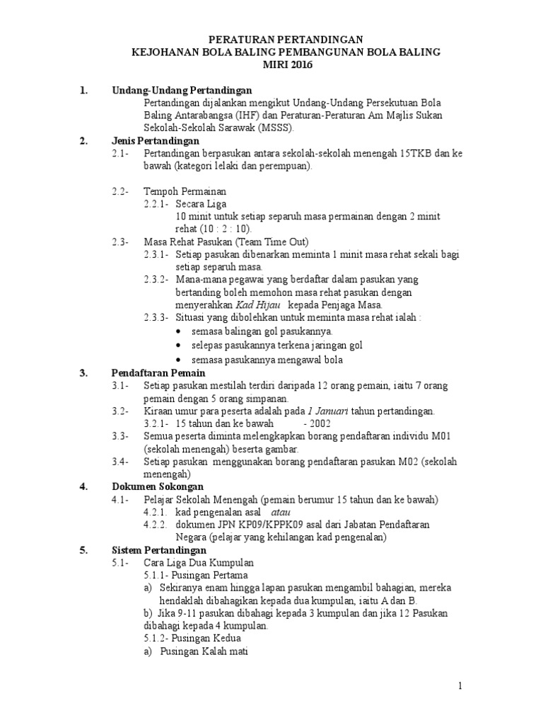 Peraturan Dan Undang Undang Bola Baling Pembangunan Miri 2016